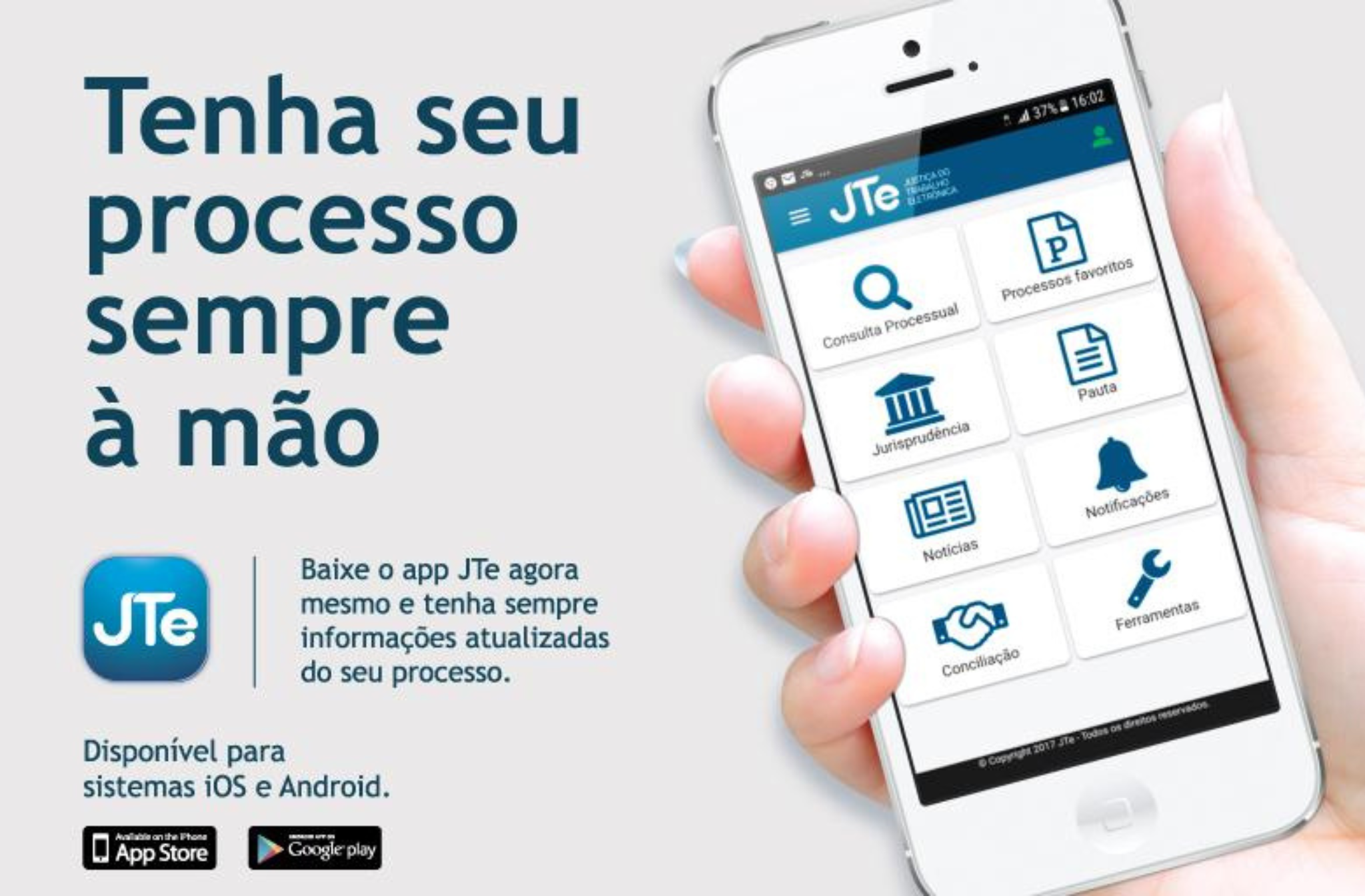 O aplicativo de celular Justiça do Trabalho Eletrônica (JTe) permite aos usuários consultar e visualizar processos jurídicos de todos os Regionais do país e do Tribunal Superior do Trabalho (TST). A ferramenta pode ser utilizado por magistrados, servidores, advogados, partes e peritos. O aplicativo foi desenvolvido pelo TRT da Bahia e está disponível para iOS e Android.