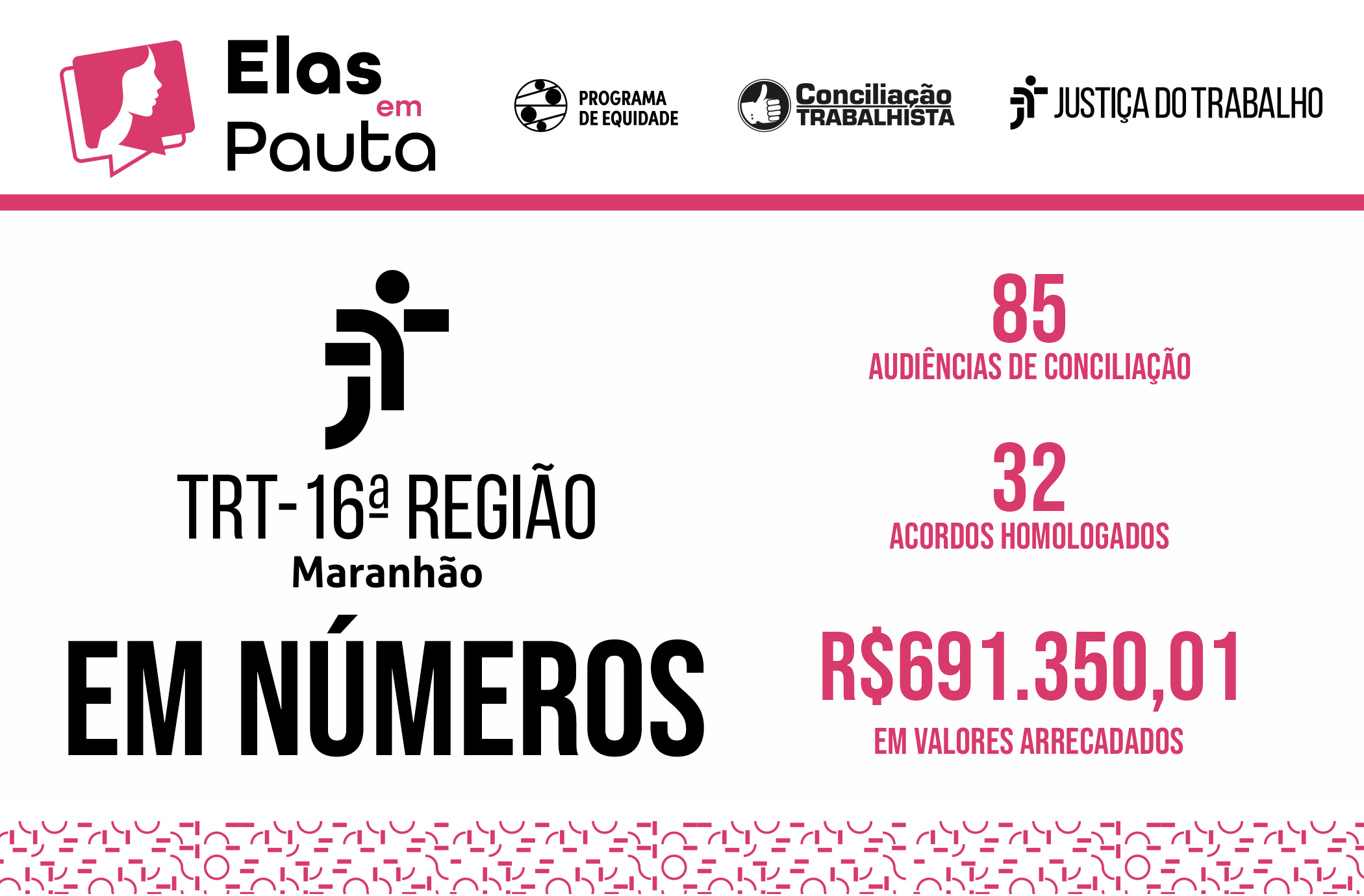 O Tribunal Regional do Trabalho da 16ª Região (Maranhão) alcançou resultados expressivos com a participação no projeto nacional “Elas em Pauta”, promovido pela Justiça do Trabalho no mês de março, em alusão ao Dia Internacional da Mulher. A iniciativa, realizada de 9 a 13 de março, priorizou tentativas de conciliação em processos trabalhistas envolvendo mulheres e demonstrou o compromisso institucional com a solução consensual de conflitos e com a promoção da equidade de gênero nas relações de trabalho.