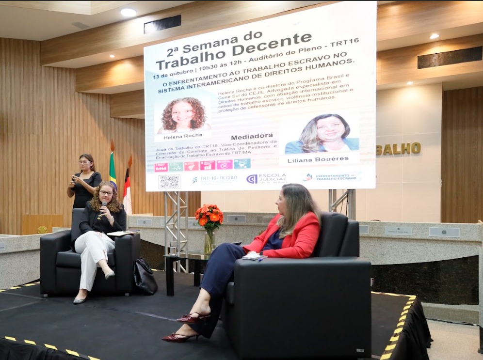 A palestrante também destacou os desafios enfrentados pelo Brasil na implementação das decisões do Sistema Interamericano e na manutenção de avanços conquistados nas últimas décadas, como o Plano Nacional para Erradicação do Trabalho Escravo e a “lista suja” de empregadores flagrados em condições degradantes.