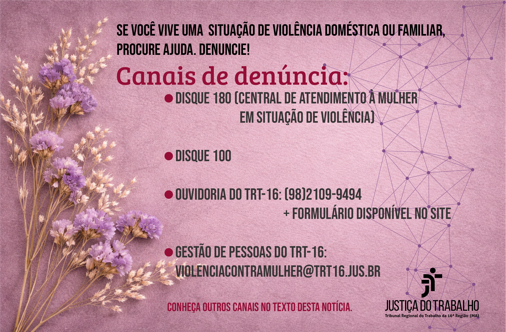 O TRT-16 se posiciona contra qualquer forma de violência.