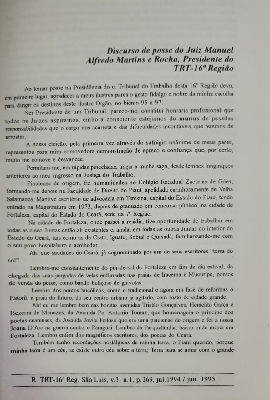 Em uma edição especial que celebra a memória institucional, a revista apresenta o momento histórico da instalação do Tribunal Regional do Trabalho da 16ª Região (TRT-16), realizada em 26 de setembro de 1989. O TRT-16 nasce 48 anos depois de 48 anos depois da declaração de instalação da Justiça do Trabalho no Brasil.
