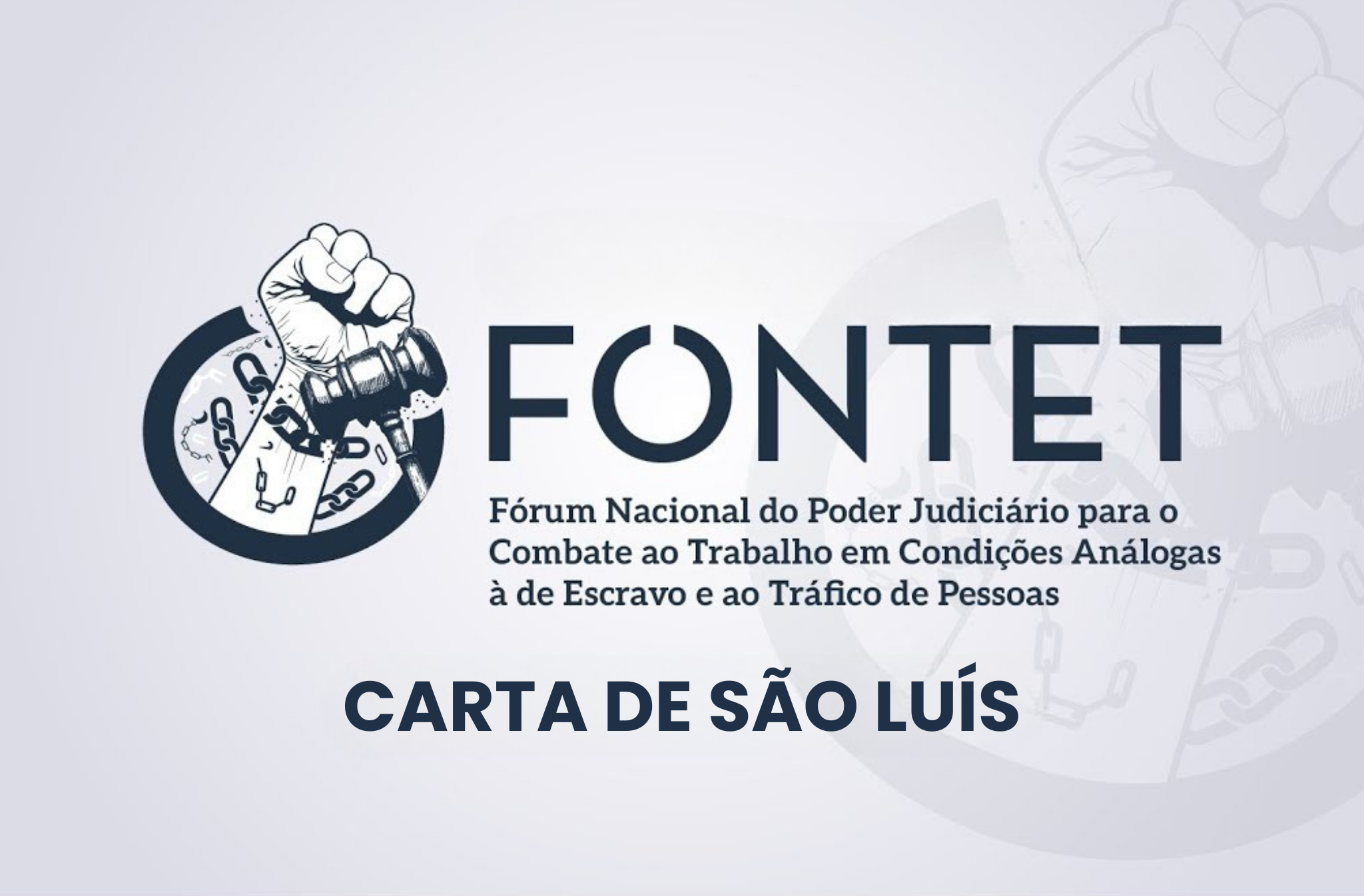 O Fórum Nacional do Poder Judiciário para o Combate ao Trabalho em Condições Análogas à de Escravo e ao Tráfico de Pessoas (FONTET) lançou a Carta de São Luís, com as diretrizes para fortalecer o enfrentamento contra o trabalho escravo e o tráfico de pessoas. O lançamento ocorreu durante o 2º Encontro Nacional do FONTET Nacional, em julho, em São Luís (MA). Na ocasião, o documento foi lido pelo conselheiro do Conselho Nacional de Justiça (CNJ) e coordenador do FONTET, Alexandre Teixeira de Freitas Bastos.