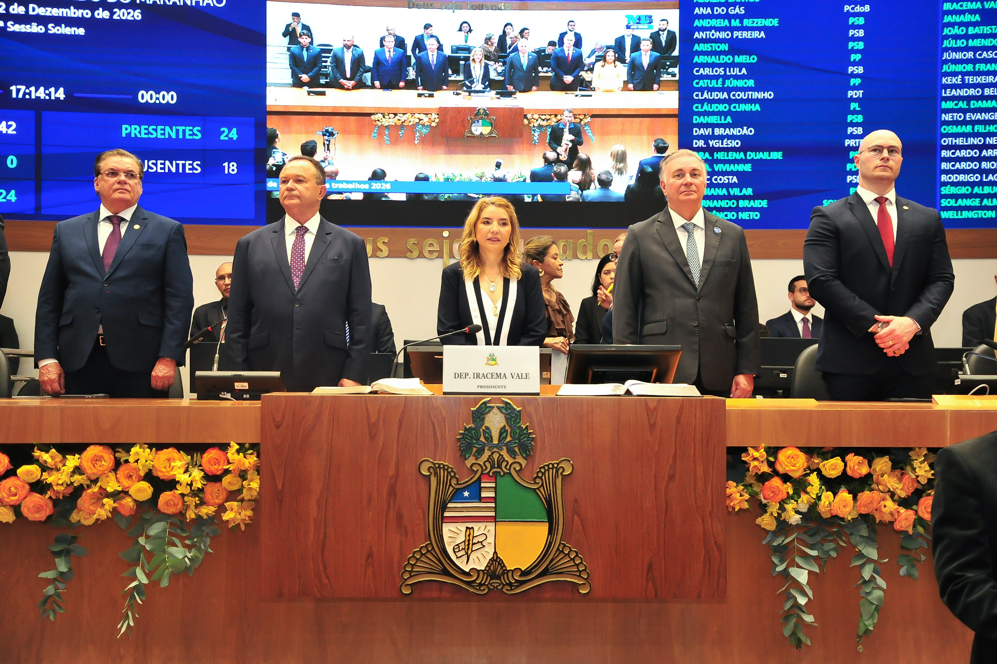 Durante a sessão solene, conduzida pela presidente da Assembleia, deputada estadual, Iracema Vale, o governador Carlos Brandão fez a leitura da mensagem do governo para 2026. “A abertura do novo ano legislativo é sempre um motivo que exige respeito, reflexão e acima de tudo responsabilidade, porque é aqui que a democracia se manifesta, é aqui que a voz do povo maranhense ganha forma, debate e decisão. É com este sentimento, diálogo aberto, transparência, compromisso verdadeiro que estou aqui hoje. Quero dizer da harmonia entre os Poderes. Nós temos uma excelente relação. Acima de tudo, ter independência, respeitar as decisões, as opiniões e os debates produtivos", destacou o governador.