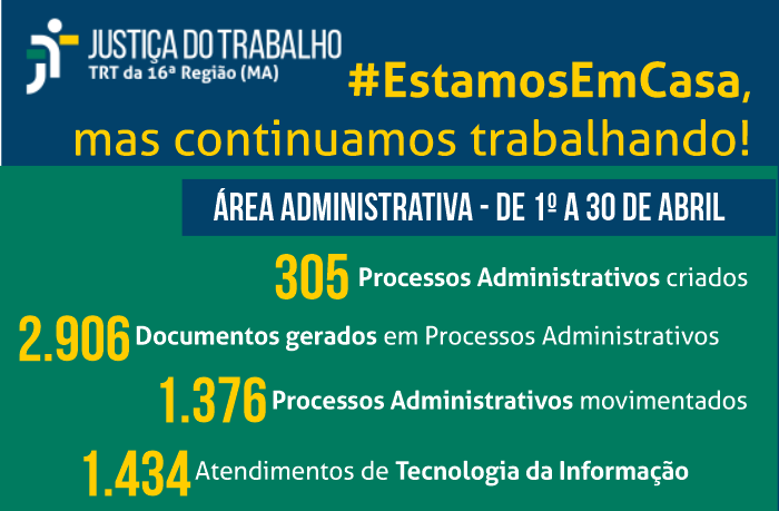 O Tribunal Regional do Trabalho da 16ª Região (Maranhão) está mantendo o ritmo das atividades administrativas para garantir o andamento das licitações, pagamento a fornecedores e andamento nos processos administrativos durante a quarentena da Covid-19. Segundo os dados apresentados pela Coordenadoria de Tecnologia da Informação e Comunicações (CTIC) à Diretoria-Geral, no período de 1º a 30 de abril, foram realizados mais de seis mil atos em trabalho remoto pelas diversas unidades administrativas do TRT-MA.