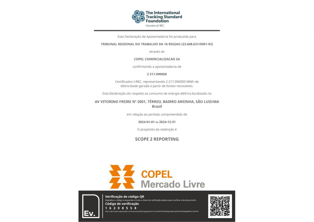 Em cumprimento à Resolução do CNJ 594/2024, foi instituído pelo Tribunal Regional do Trabalho da 16ª Região (TRT16), através da Portaria GP Nº 143/2025, o Plano de Descarbonização, instrumento da Política de Sustentabilidade do Poder Judiciário, vinculado ao planejamento estratégico do órgão, que tem como objetivo promover a descarbonização do TRT16, por meio de ações para medir, reduzir e compensar as emissões de Gases de Efeito Estufa (GEE) resultantes do funcionamento do órgão.